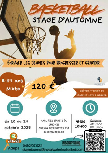 Le stage d'octobre 2022 au Royal Waterloo Basket, en collaboration avec Spartiate Elite Basketball, c’est déjà terminé. Une belle semaine de basket initiation pour certains, de basket perfectionnement pour d’autres jeunes. Une belle semaine aussi où rires, joies, rencontres furent au rendez-vous ! MERCI à tous, enfants et staff coaches ! A vos agendas: notre stage de Noël aura lieu du 26 au 30 décembre 2022. Les informations suivront prochainement.